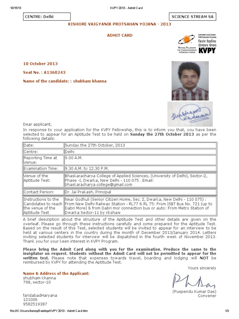 Those who fail to produce the kvpy admit card at. Check kvpy admit card 2019 steps and other info. Candidates can download the admit cards online from the official website. The kvyp exam is going to be held on 05th november 2017. Kvpy admit card 2019 will be available in online mode only. There are three steps to complete your application successfully. The kvpy 2018 admit card for the esteemed kishore vaigyanik protsahan yojana (kvpy) scholarship examination can be downloaded once the official notification is out. Kvpy (kishore vaigyanik protsahan yojana) is a national level scholarship program organized by iisc bangalore. They must remember to verify all the particulars and ensure that every detail mentioned on kvpy admit card is accurate and true. Kvpy admit card carries all important information about the candidate and the exam they are appearing for. The kvyp admit card has been issued by indian institute of science banglore (iisb). Know all important dates related to download the admit card you will have enter your kvpy 2019 application number and date of birth. Kvpy is a national level scholarship exam which is also considered to be one of the prestigious programs in india.